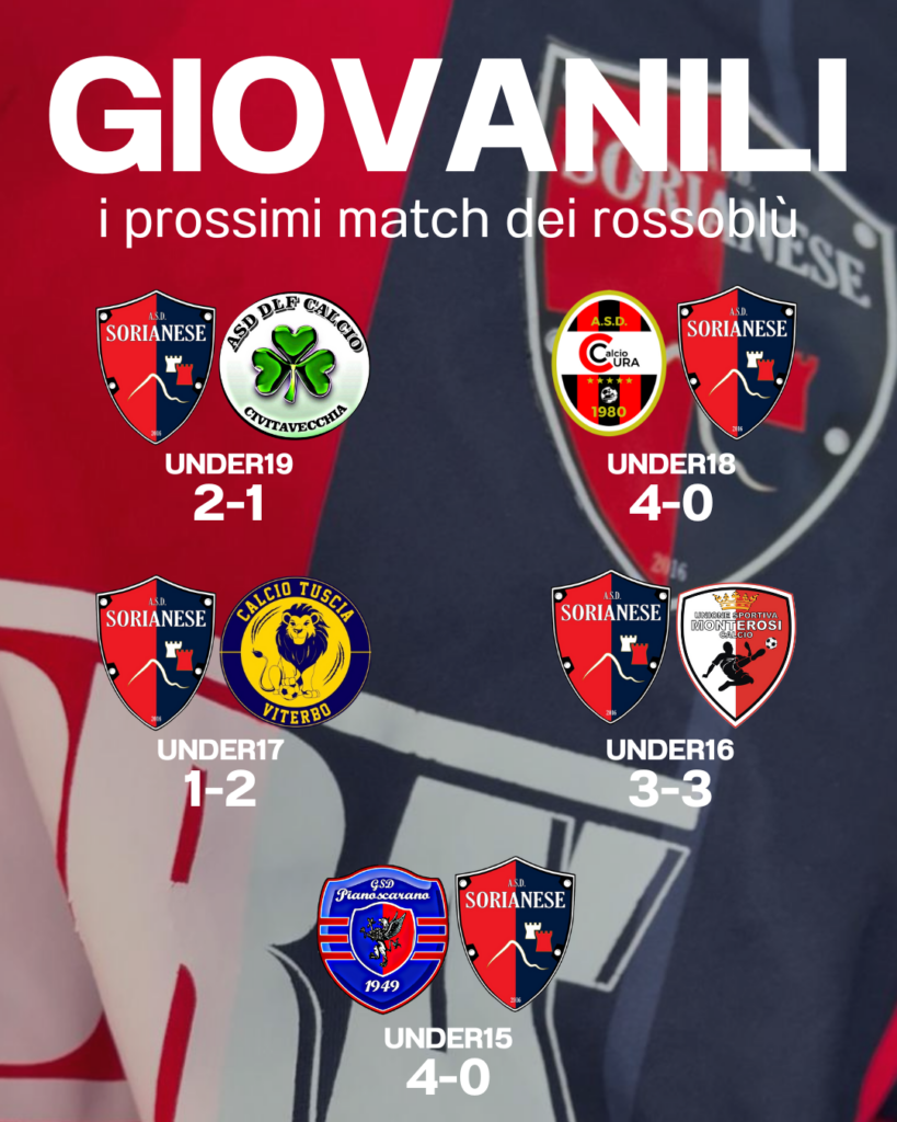 Risultati giovanili Sorianese: il weekend rossoblù si chiude con una vittoria, un pareggio e tre sconfitte.